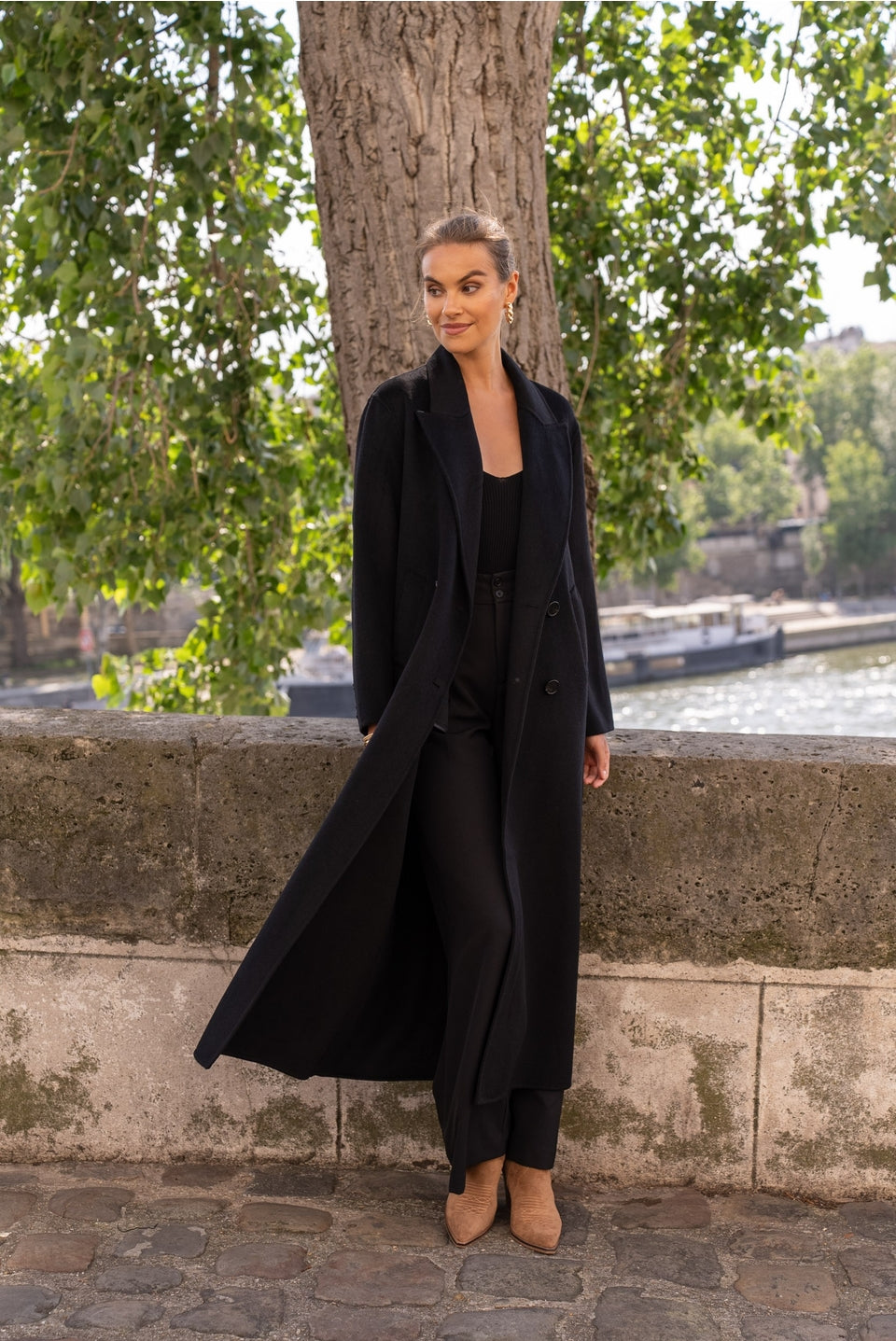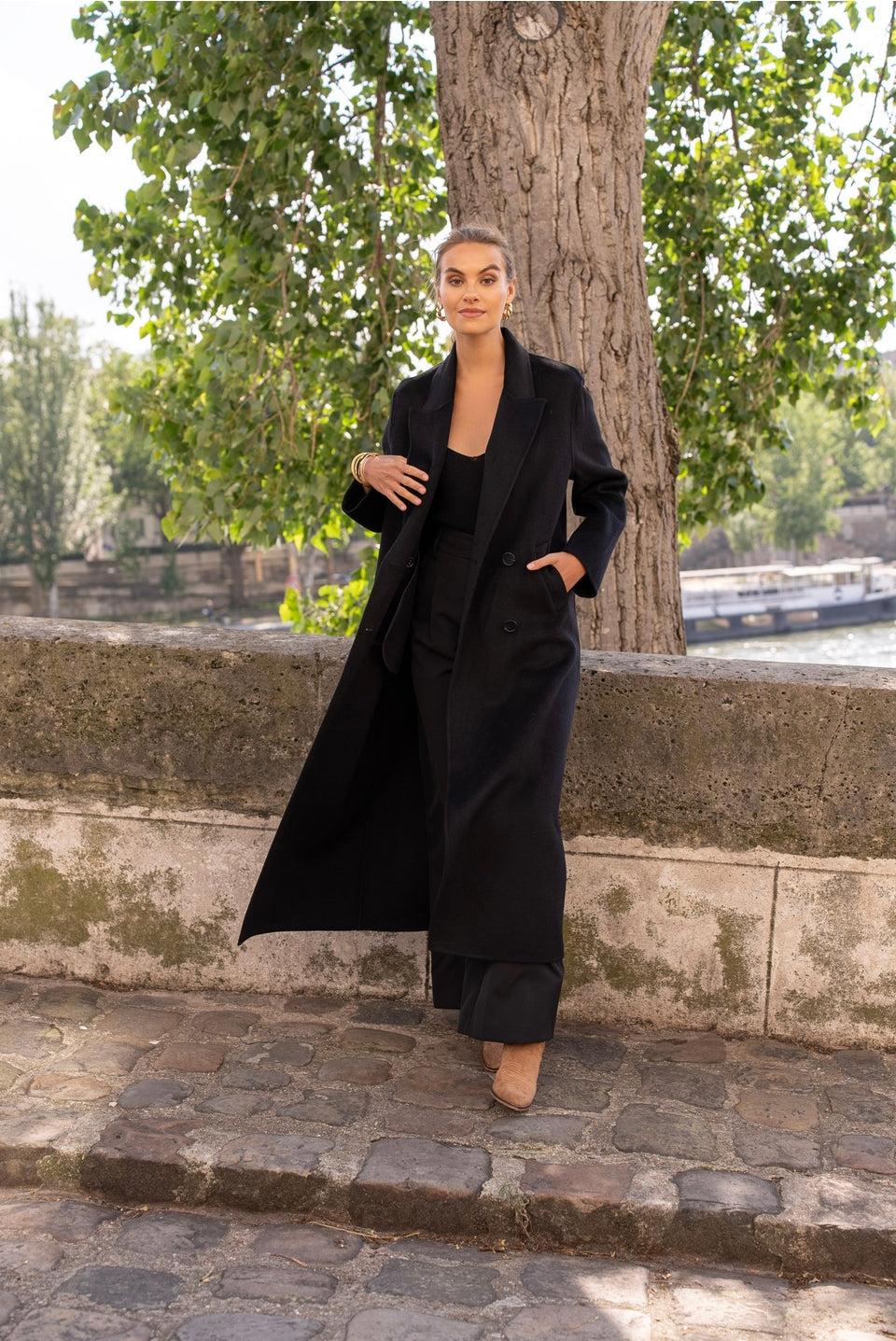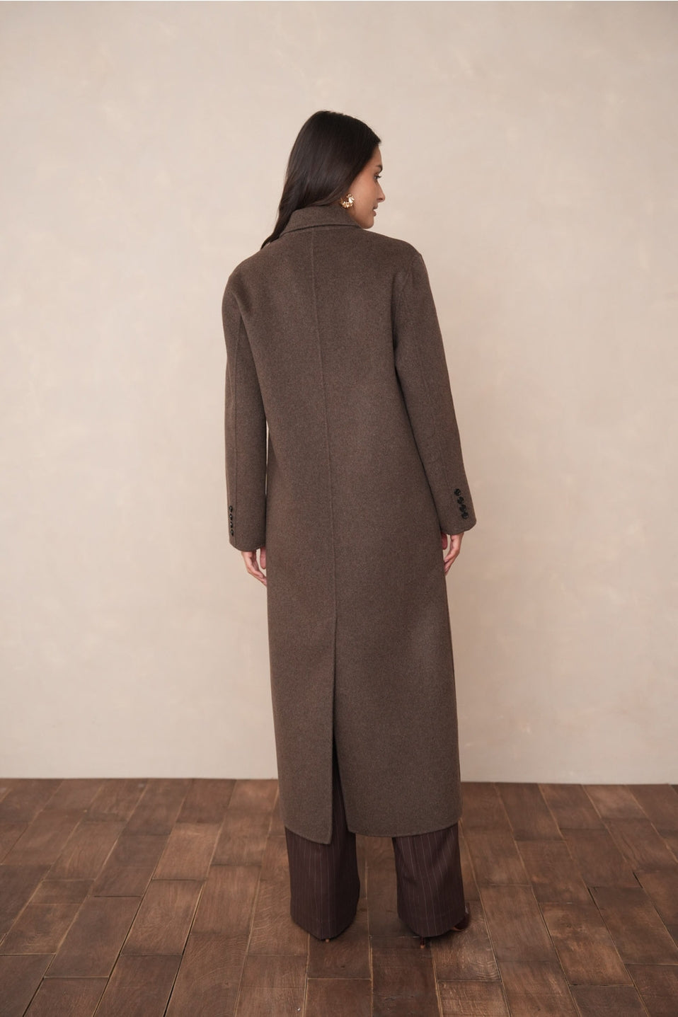De **Élodie Jas** belichaamt klassieke luxe en verfijning. Deze extra lange, oversized jas is met de hand vervaardigd uit een hoogwaardige wolmix voor ultieme warmte en comfort. De dubbele kruisknoop in dezelfde tint, discrete zijzakken en vloeiende drapering geven deze jas een tijdloze elegantie met een moderne touch.