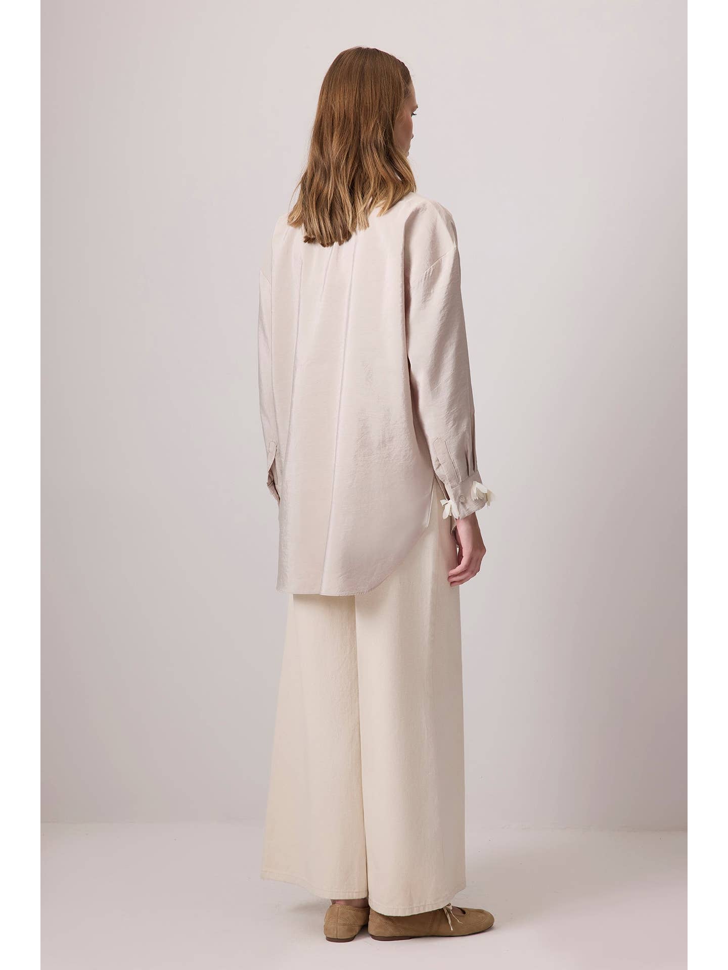 Verhoog je dagelijkse garderobe met het Fleur Shirt, een oversized blouse gemaakt van een lichtgewicht, subtiel glanzende stof. Het ontwerp combineert comfort met verfijning, terwijl de delicate 3D-bloemenapplicaties een romantische en vrouwelijke touch toevoegen. Perfect voor lente en zomer, ideaal om te combineren met op maat gemaakte broeken, denim of gelaagd over jurken voor een moeiteloze, chique look.